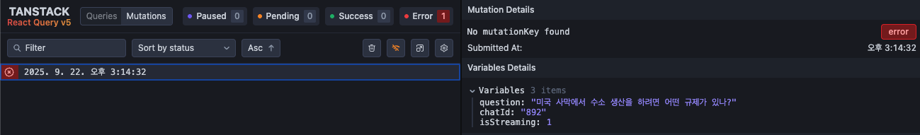 현재 '정책 특화 AI 채팅 서비스'의 FE 개발에 참여하고 있다. 최근 AI 답변 중 네트워크 문제가 발생할 경우 network error 메시지를 띄우고 try again을 할 수 있는 기획이 들어왔다. 단순해 보이는 요구사항이었지만 예상치 못한 문제를 발견했다.